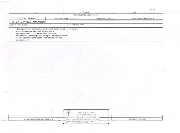 Кадастровый номер: 23:17:1401022:398Право аренды на земельный участок